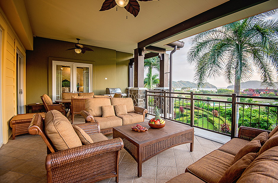 This villa is in a quiet neighborhood of Mediterranean-style townhouses and villas within a private community in our resort. Courtyards, clay roof tiles, and water features characterize the eclectic influences of modern Spanish colonial revival. Sitting on a terraced hill overlooking the resort and Herradura Bay below, formal tropical gardens surround the community’s infinity pools, while all the amenities of resort living are nearby at Marina Village just below.