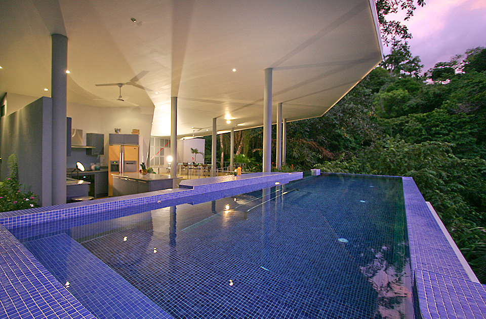 The suspended infinity pool is unique with a large viewing window, bar surrounding the pool and a sunning deck. Situated off of the kitchen, this is truly a swim up bar!. Monkeys love to walk on the edge of the pool.