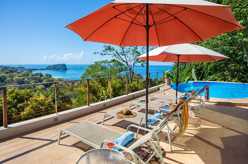 This 6,500 square foot home has four levels and a great design inside and out. From the sundeck, you have an amazing, unobstructed view of the ocean and rainforest and plenty of space to bask in the sun in the lounge chairs or enjoy a cool beverage under the covered terrace. Take a refreshing dip in your private, crystal blue pool while relaxing and listening to the sounds of the jungle. You will be sure to hear and see many tropical birds like toucans and scarlet macaws, and if you are lucky, you may get visits from a monkey or two!